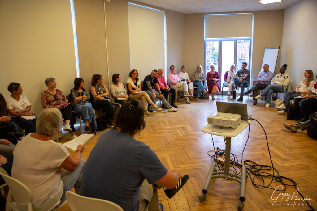 Dans le cadre de la fête des 15 ans de l’Association pour la Communication NonViolente en Belgique Francophone, l’équipe Ess’aimer au complet a eu la joie d’animer une conférence gesticulée, plusieurs ateliers autour de la CNV et de l’éducation, de la Justice réparatrice, du mouvement, et a proposé un voyage à l’intérieur de la cabane CNV.
